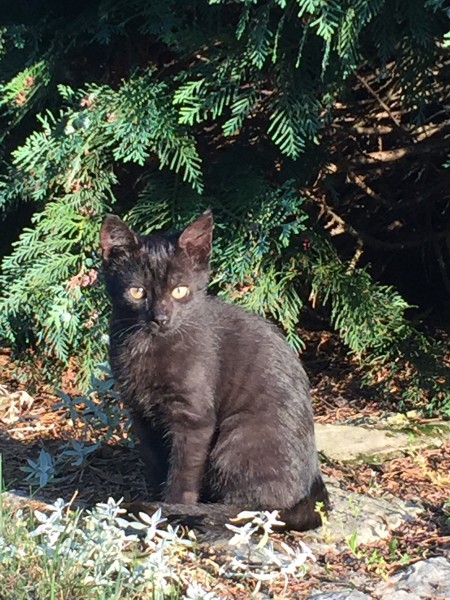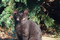 Mīlīga, melna ar pēlēkām strīpām uz sāniem, nāk pie cilvēkiem, atsaucas uz vārdu Iriska.