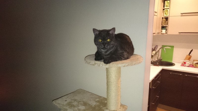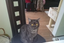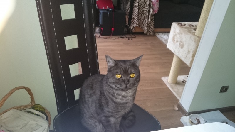 Britas sugas kakis. tumsi bruns ar baltu pavilnu,ar dzintarkrasas acim. sauc Tima.