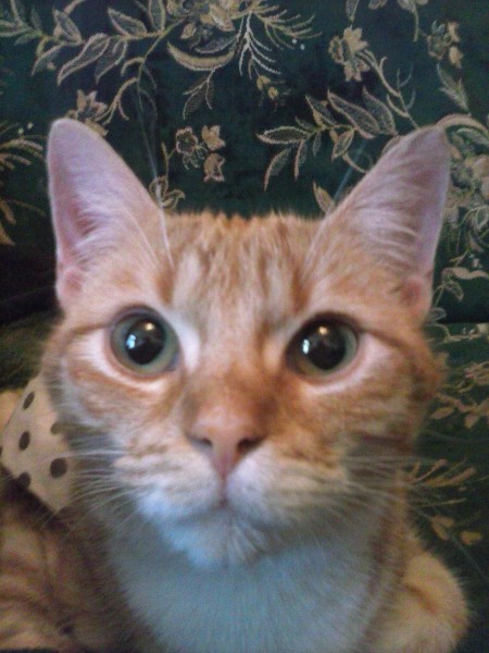 Š. g. 04. oktobrī no plkst. 20 līdz 23 no mājām Rīgā, Brīvības ielā 185 aizmuka kaķenīte. Krāsa ruda ar baltu, vecums 1 gads 1 mēnesis.