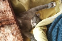 Pazudis pelēks kaķēns ar melnām strīpām un baltām priekšķepām.... kaķim zodiņš ir balts un uz zoda ir pelēcīgs plankumiņs..... Kaķēns atsaucas uz vārdu "Fiksis" un viņam ir zaļas acis. Kaķēnam ir paradums ielīst visur kur viņš var, piemēram, auto.