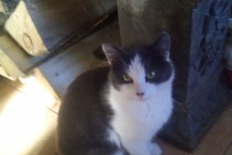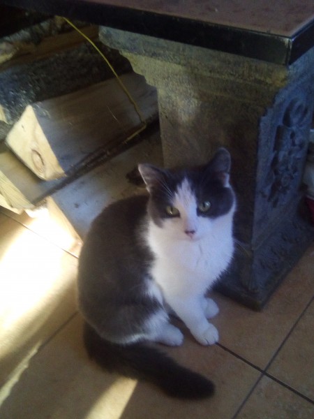 Ļoti mīlīga, nebaidās no svešiem cilvēkiem. Kažociņš pelēks ar baltu, ļoti mīksts.