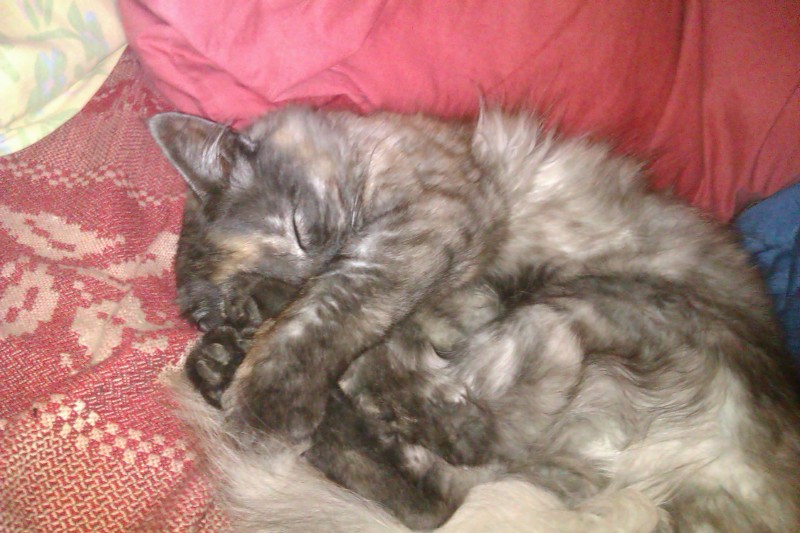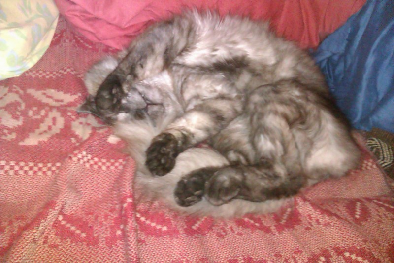 Zilganpelēks, pūkains, apaķšejā spalvu kārta gaišāka, ķepas tumšākas, interesants deguntiņš, kupla aste