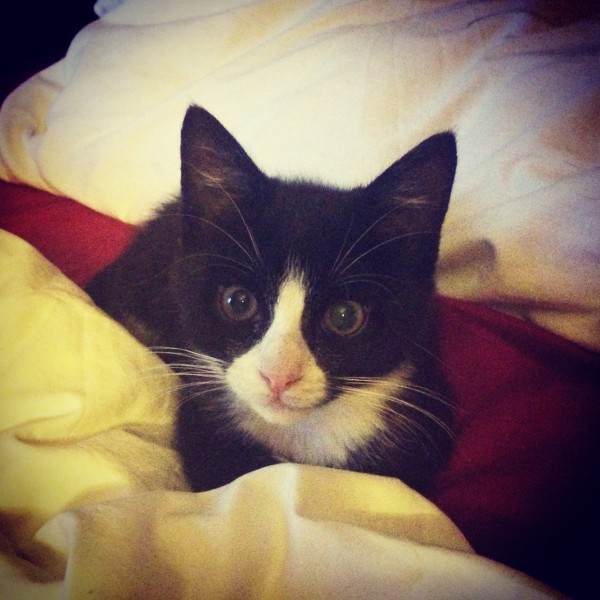 Bildē runčuks ir vēl mazs kaķēns. Tagad viņš ir liels un skaists.