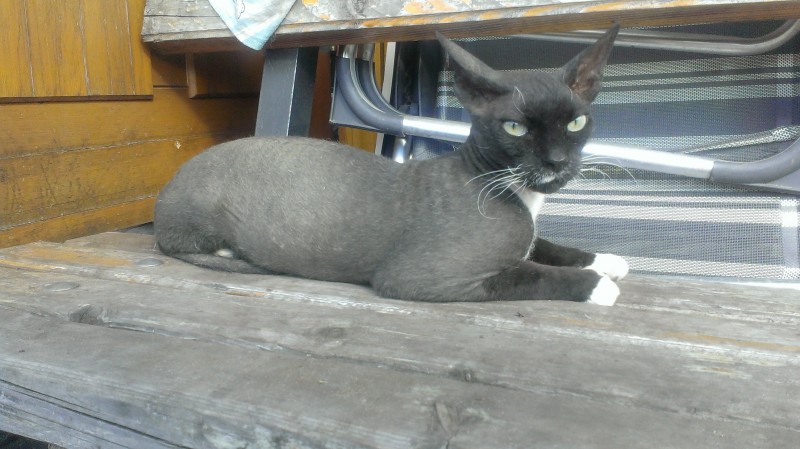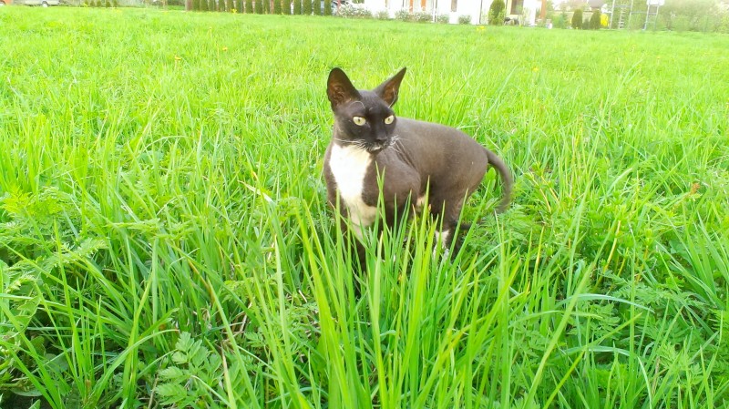 kanadas sfinks melni-peleka krasa ar baltam kepinam un baltu krutinju..! Vinjam ir slima sirds..var klepot!!!!!