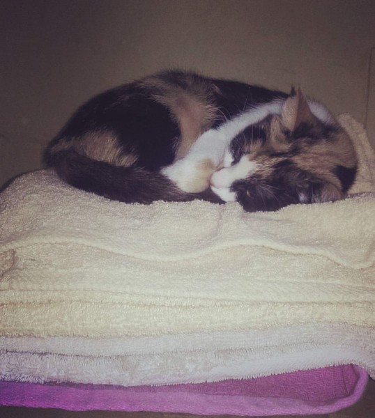 Trīskrāsaina. Kopta, mājas kaķis. Līdz šim dzīvojusi tikai pa istabām. Ļoti mīļa.