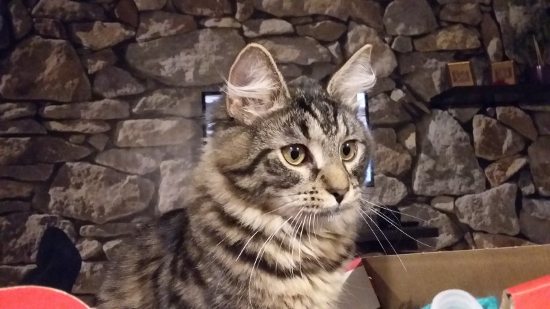 Parasta, strīpaina, pūkaina kaķenīte. Vārds -Čiepa. Diezgan bailīga.