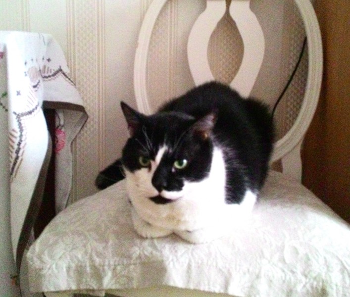 Пропал кот Мурзик. В районе 1-ой линии. Ему 13 лет. Глаза зеленые. Белая полоса поперек морды. Крупный, мощный, лапы длинные. Шерсть плотная, гладкая, блестящая. Хвост черный, посередине - тонкое белое колечко. Дружелюбный.