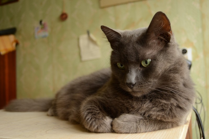 - kažoks garš, pelēks, nedaudz sudrabainām kājiņām, aste pūkaina, acis zaļas