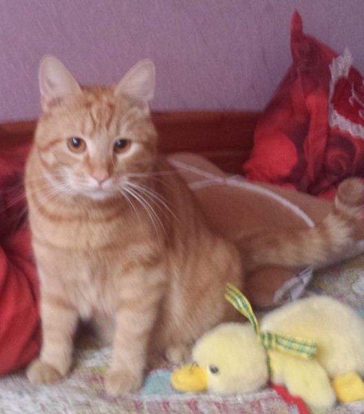 Ruds kaķis ar gaiši brūnu acu krāsu.Kažoks bez baltiem plankumem. Kaķis 2 gadus dzīvoja tikai dzīvoklī. Ļoti bail no suņiem un visa kas laukā. Izkrita no 4 stāva balkona un pazuda. Mājās atsaucās uz vārda Mīlītis vai Mīlis.