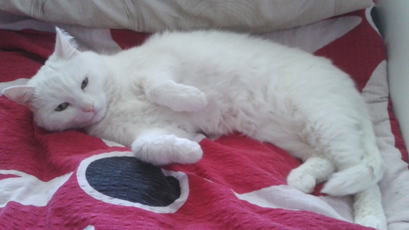 Pazuda balta kastrēta kaķenīte, ļoti bailīga, šņāc uz svešiniekiem, bet nekož. Vārdā Mice. Īpašā pazīme-pakaļējā kreisā kājā šķībs nags ieaudzis.