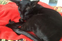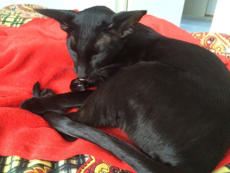 Melna orientālās škirnes kaķene. Pazuda Jūrmalā, Dzintaros.