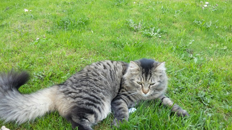 Pazudusi brūnas tīģekrāsas kaķene. Kupls kažoks, īpaši aste. Atsaucas uz vārdu Fanija.