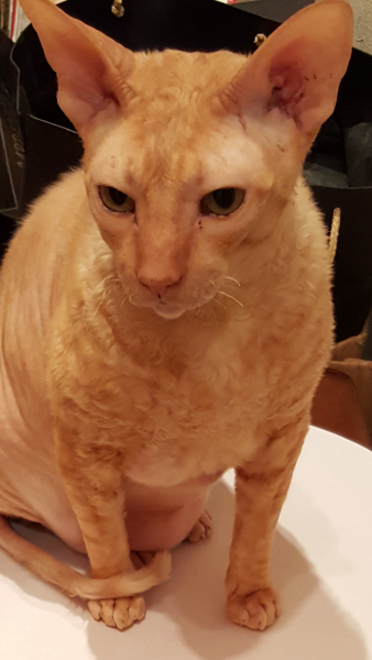 Пропал кот, Cornish Rex (рыжий, с отвисшим животиком, на шее розовый шрамик где плохо растёт шерсть).