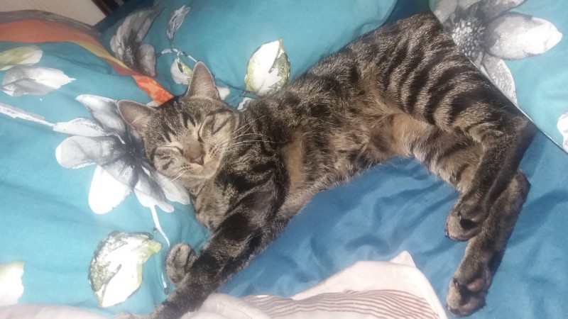 Pelēki strīpains runcītis bez siksniņas. Pieradis dzīvot gan dzīvoklī Liepājā, gan pie dabas lauku sētā, vēlāk atgriežoties istabā. Kopš 1. oktobra tomēr nav atgriezies, noklīdis Laidu pagastā, iespējams ciemojas kādā citā sētā vai klejo.
