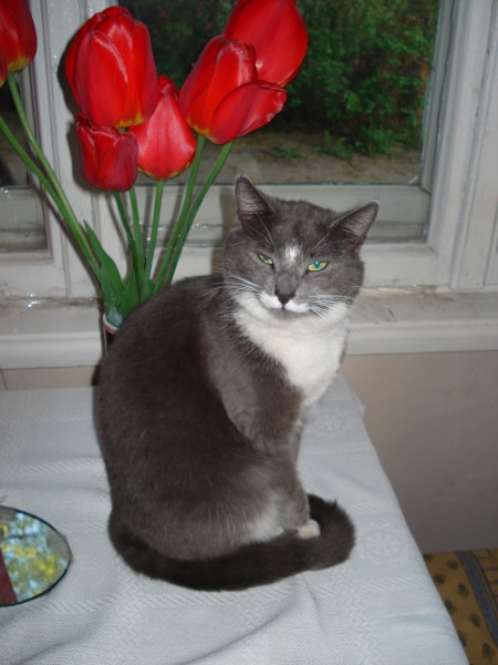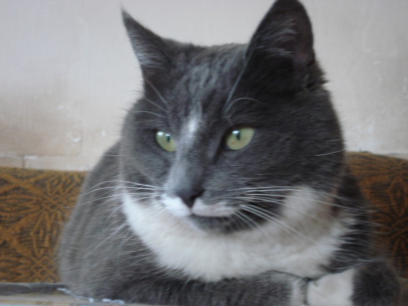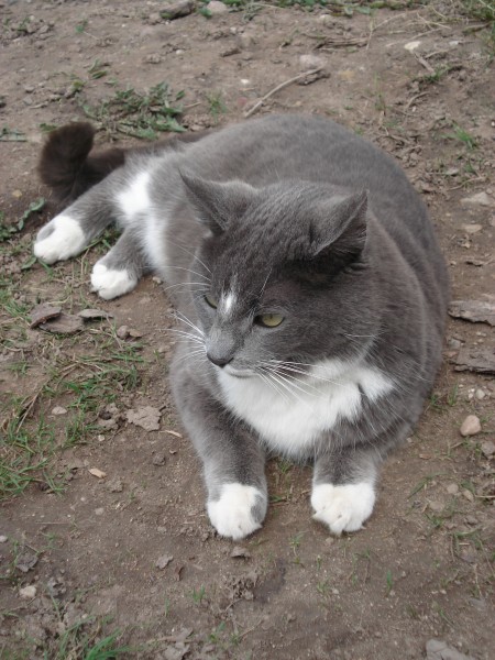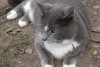 Pelēka ar baltu (balts laukumiņš uz pieres, vaidziņi, pakrūte un zeķītes).