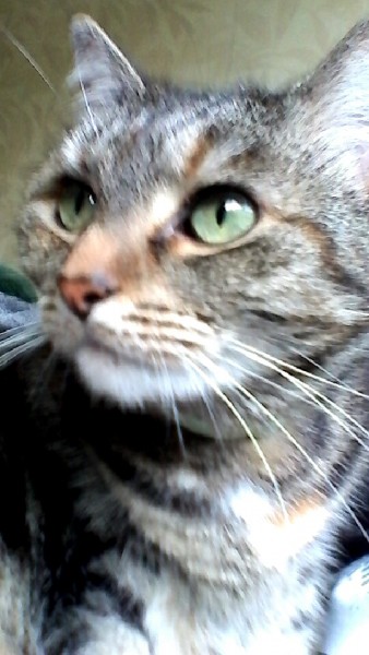 Zaļa blusu siksniņas, vēders smilšu krāsā, zaļas acis, trīskrāsaina, sterelizēta
