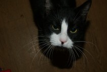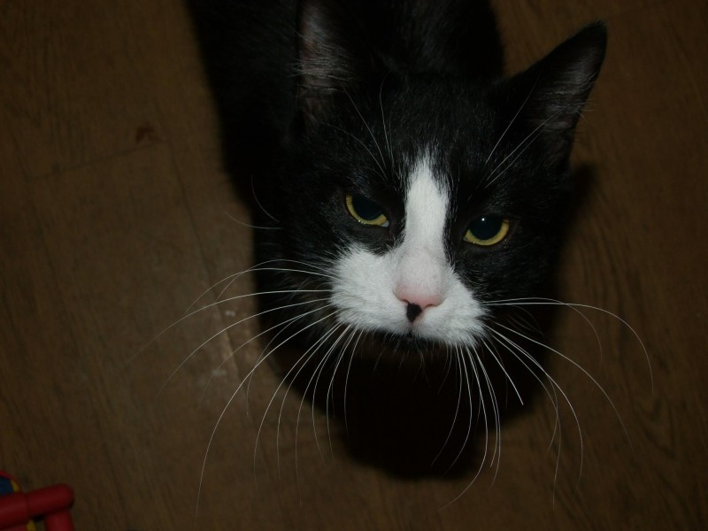 Melnbalts kakis. Uz deguna melns plankumins. Atsaucas uz vardu Pasha. Baltas kepas,kakls, deguntins un \"vaigi\". Ir aras kakis, tapec biezi mil but ara. VNM naca majas. Pazuda Juglas iela, talak par sho ielu negaja, tgd varbut apmaldijas.