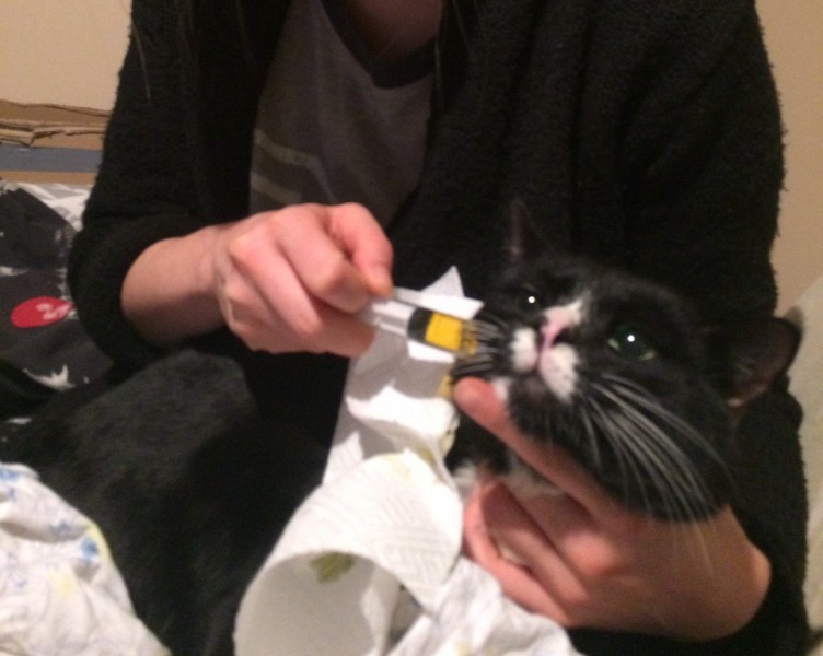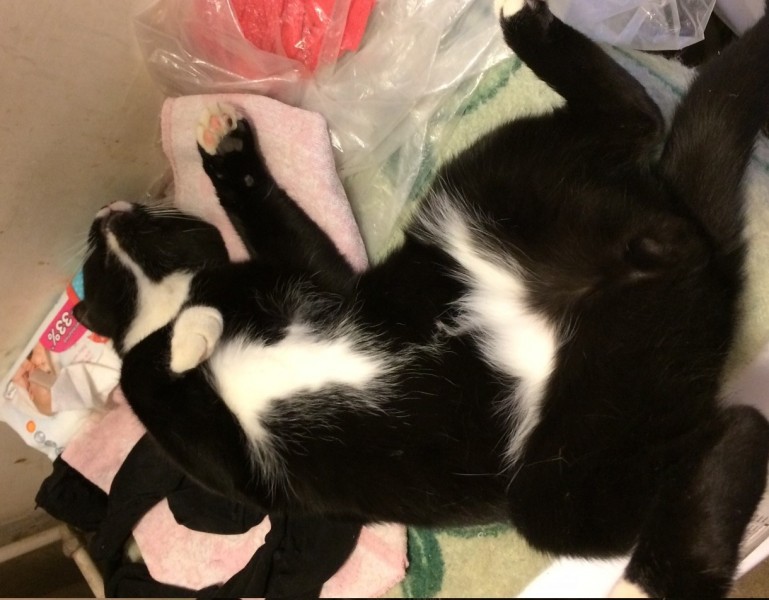 Kaķi sauc Baņtik. Nav kastrēts. Viņš ir mierīga rakstura kaķis, bet bailīgs, un ja to noķertu varētu panikot. Uz vaiga ir neļela brūce