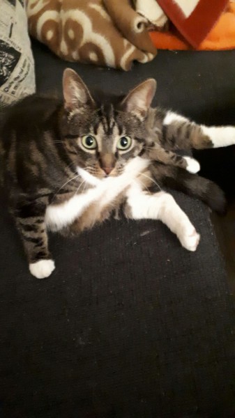 Sauc Maša, bailīga, rokās nedodas, pazuda Bebru ceļā, Jelgavā. Pati neliela, bet ar vēderu.