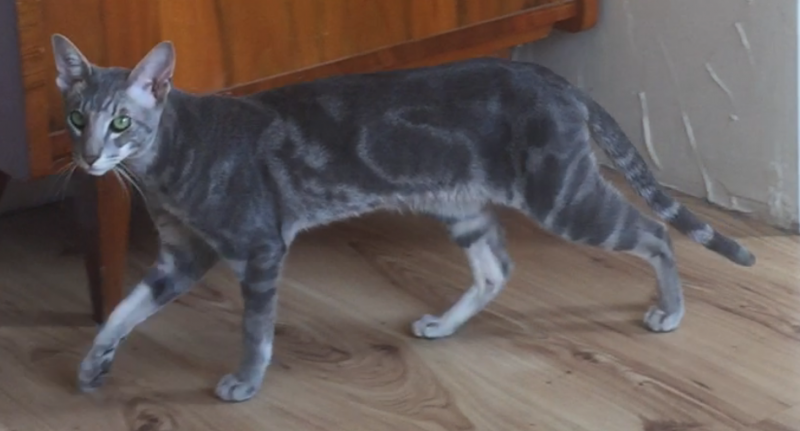 Pazudis Oriental šķirnes runcis. Kažoks pelēks ar gaiši pelēku svītrojumu