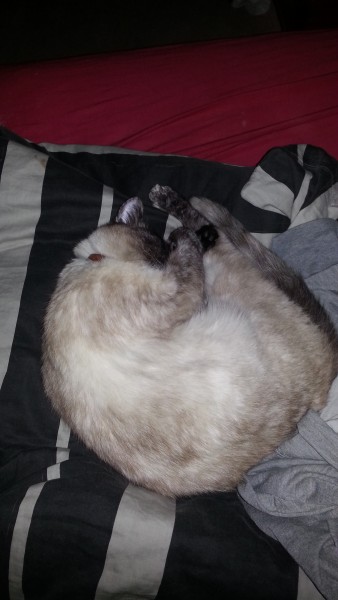 Labi kopta un mīļa kaķene līdzīga siāmas šķirnes kaķiem, dzīvoja gan istabā gan pastaigājās laukā.