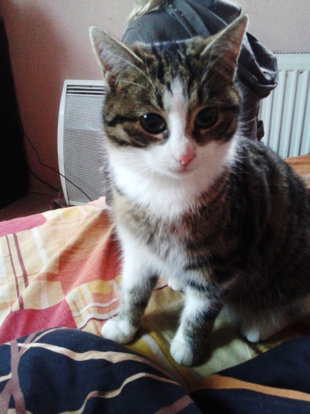 Pelēka ar strīpiņām ar baltu sejiņu un balts vēderiņš, maza auguma, lielām izteiksmīgām acīm. Atsaucas uz vārdu Fēbe. Pazuda 2017. gada 31.jūlijā. Rīgā. Torņkalna rajonā.