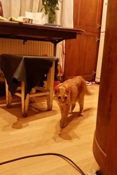 Rižs kaķis ar baltu vēderu un rižiem plankumiem. Smilšu krāsā acis. Balti, riži strīpaina aste. Pazuda Ģibuļu pagastā, pēdējo reizi manīts Rīgas apkaimē.