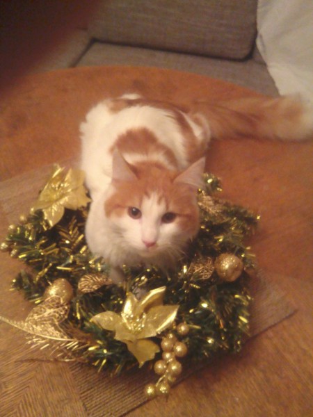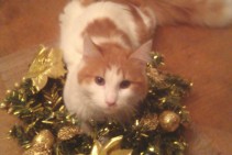 Bezšķirnes angoras tipa balts ar rudu.