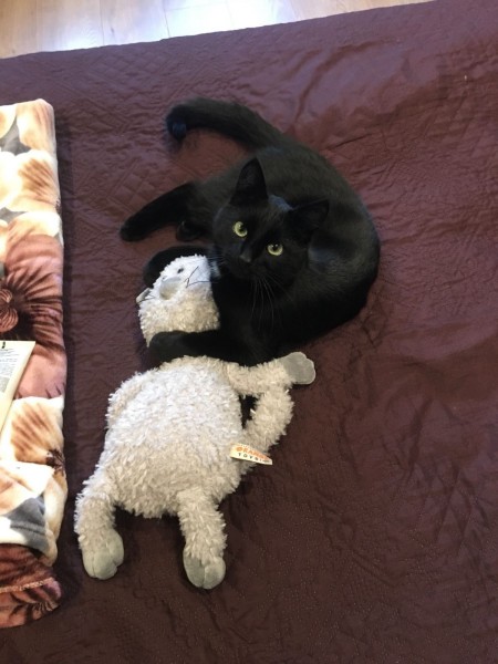 Ļoti neuzticējās cilvēkiem. Ilgi pieradījām , ka var mums uzticēties. Ir ļoti mīļš, patīk sēdēt un gulēt klēpī. Bet citiem rokās joprojām nedodas. Mednieks.