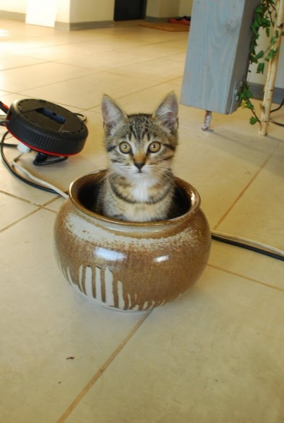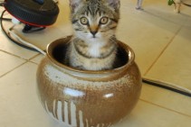 Ļoti skaista "parastā svītrainā" mājas kaķene. Krāsas: brūna, pelēka, melna, balta. Slaida. Bailīga. Acis zaļi-dzeltenas. Bildē viņa redzama kā kaķēns.