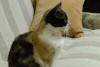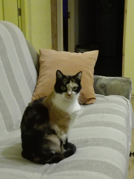 Trīsrāsaina kaķenīte, vārdā Rūce. Balta pierīte un krūtiņa, melna acu daļa. Viņa šonakt nokritusi vai nolēkusi no 4 stāva balkona, tādēļ iespējams, ka klibo. Kaķenīte nav dzīvojusi ārā, tāpēc varētu būt pārbijusies, neēdusi/nedzērusi.
