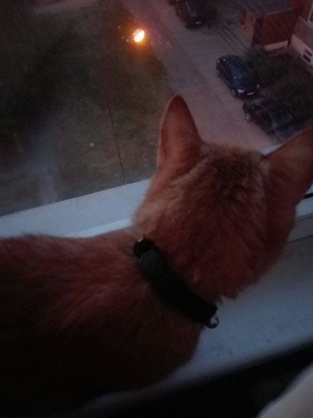Pazuda kaķenīte rudā krāsā ar melnu siksniņu ap kaklu