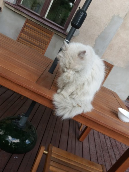 Pazudis ļoti mīļš kaķītis. Kaķītis ir pilnīgi balts ar garu spalvu. Nav pūkains un pazīme ir ļoti maza. Uz vienas no austiņām ir maza skramba (aptuveni 2 mm). Kaķa vārds ir Picis.