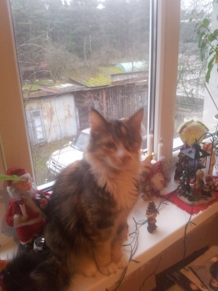 Trīskrāsaina kaķene,laba spalva-ar baltu priekšautiņu