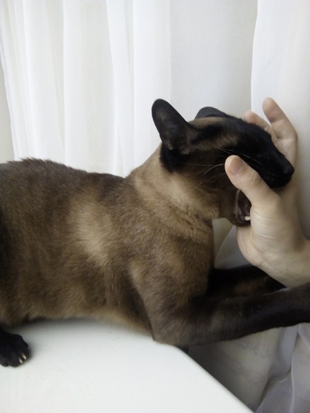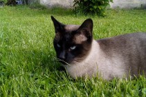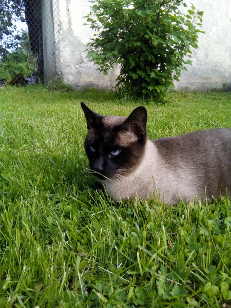 Tumšais siāmietis, izteikti zema balss, zilas acis, atsaucās uz vārdu Fikss, svešiem cilvēkiem parasti rokās nedodās.