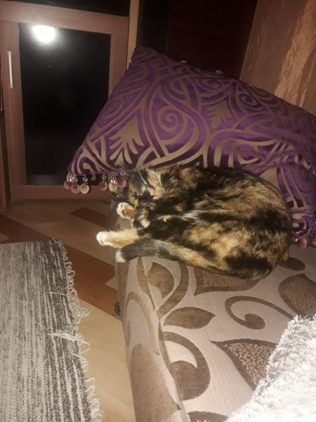 Pazudis kaķene ļoti mīla,bet bailīga, trīskrasu.Sterelizēta.