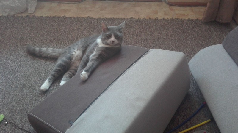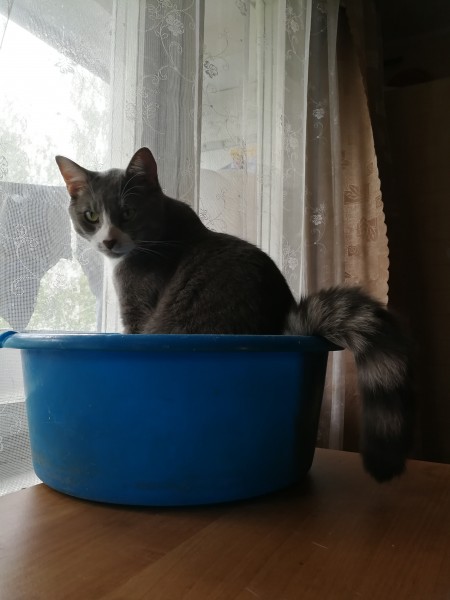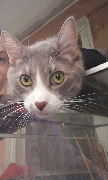 Pazudis no 4 stāva balkona. Īpašas pazīmes - interesanti veidots balts purniņš, aste kā lemūram strīpaina. Bailīgs no svešajiem