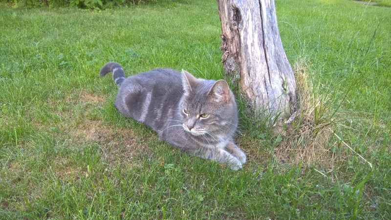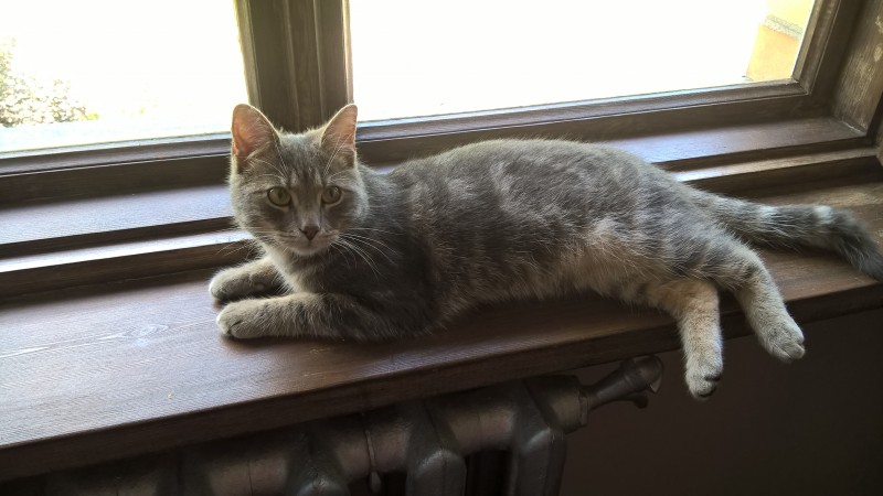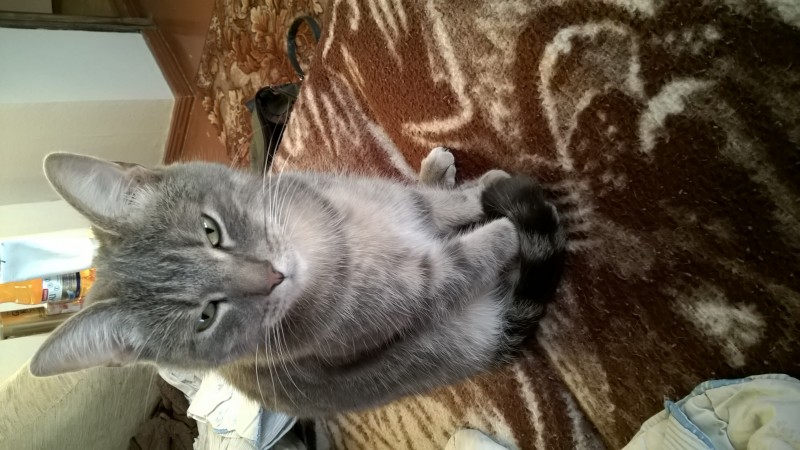 Samērā kautrīgs runcis, svešiem cilvēkiem rokās nedodas. Diezgan unikāla pelēka krāsa, gaišāki apļi sānos. Atsaucas uz vārdu Pipars vai Pips/Pipa. Aptuveni 5kg smags, dzeltenīgi zaļas acis. Balts zods, plankumains vēders. Aste svītraina melna/pelēka.