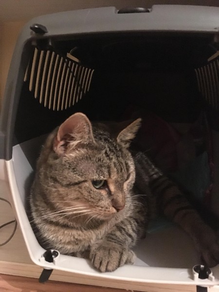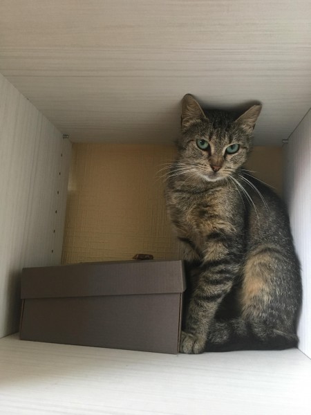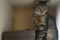 Kaķene ļoti bailīga, ar koptu kažociņu un garām kājām. Sterilizēta, nogriezts kreisās auss gals. Zilganzaļas acis un raibi svītrains kažoks. Aizskrēja Ušakova kepkas virzienā no Ilūkstes ielas 54 k 4 ielas puses pie bērnu rotaļu laukuma.