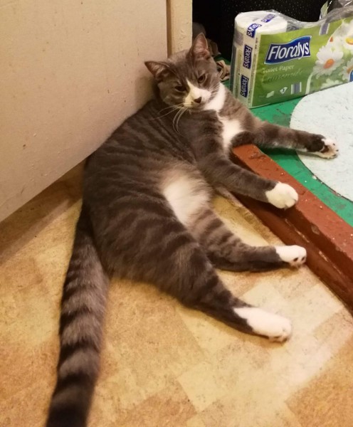 Runcis vārdā ROMA. Balts purniņš kā sveces liesmiņa, aste strīpaina kā lemūram, visas ķepiņas baltas