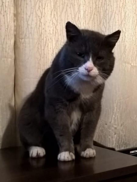 Bailīgs no svešiem cilvēkiem. Kreisās auss gals iešķelts.