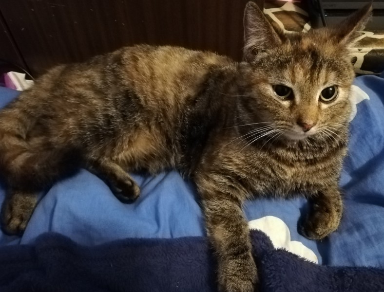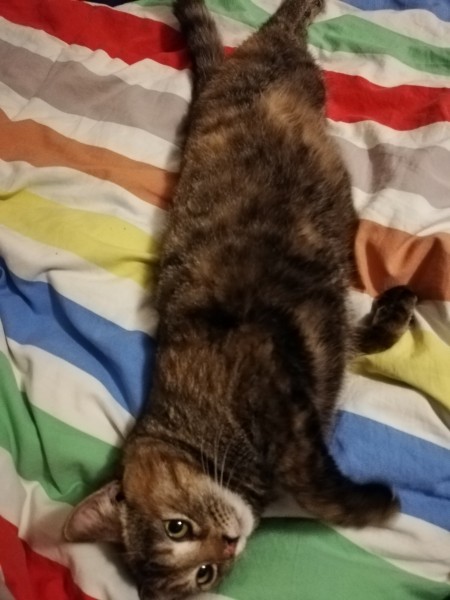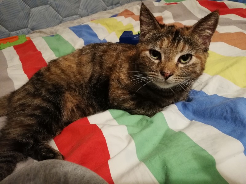19.marta pazuda Jelgava Atmodas ielas apkārtnē ,kaķenite ir mīļa varbūt bailiga no svešiem ,varbūt ir pie kāda pieklidusi ?Krasas pelēka ,rudā ,melna