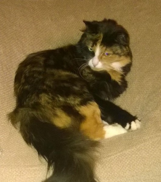 Trīskrāsu kaķenīte ar garu spalvu sabijās un aizskrēja no jaunajām mājām Bieriņos un vairs nemāk atrast ceļu atpakaļ. Ļoti gaidām Ommedu mājās.