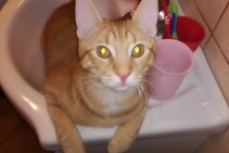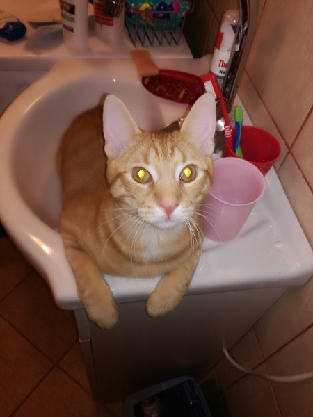 Tumši ruds runcis,tievs,paliels, ar garu degunu.