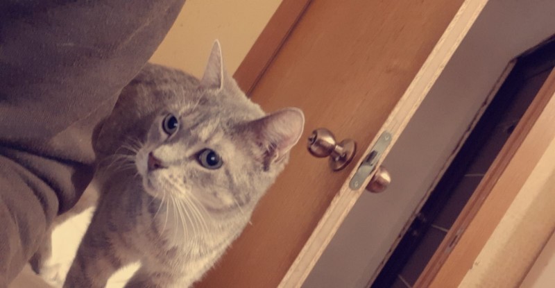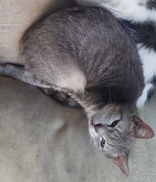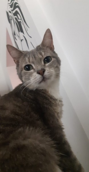 Pelēkibēša kaķu meitene vārdā Kloja,