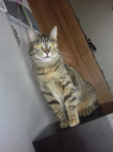 Pazudusi brùni strìpaina kaķenìte. Neliels ruds pleķitis uz galviņas.Dzeltenìgas acis.