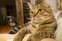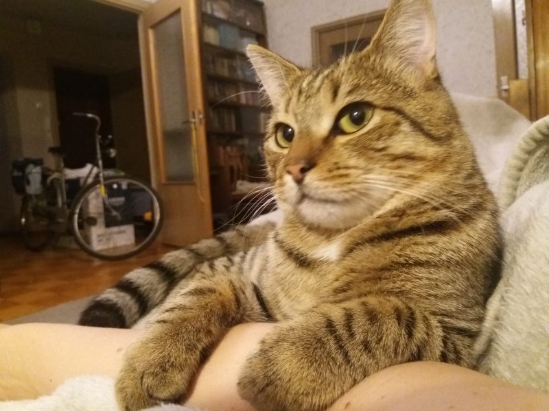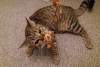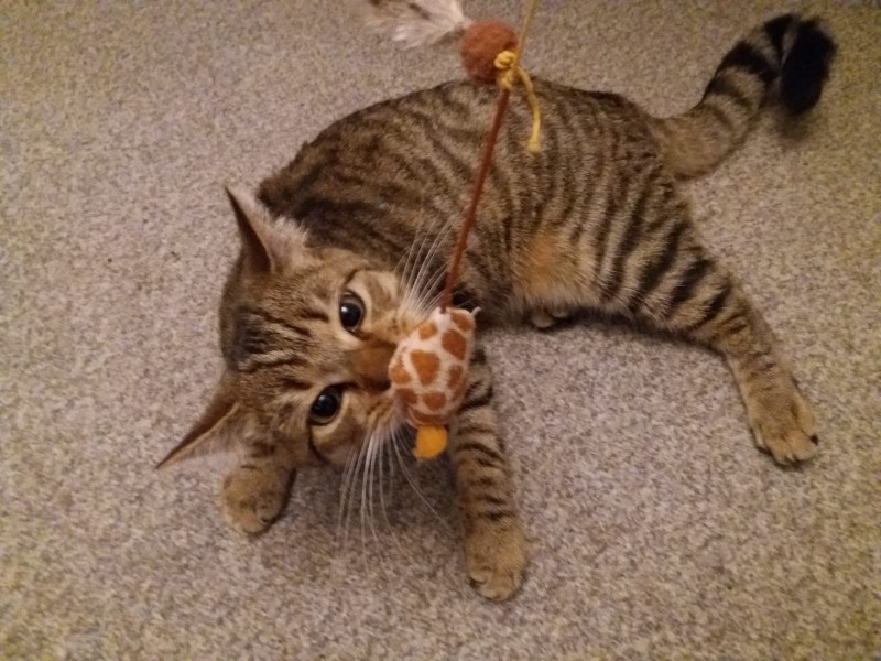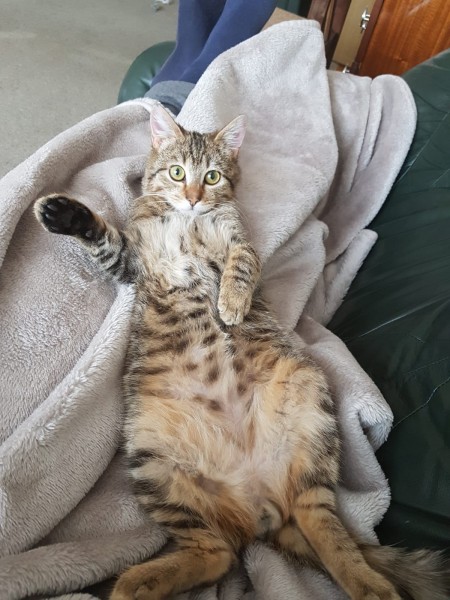 Hārlijs. Ļoti bailīgs, nekad nav bijis ārā. Pie acīm izteiktas melnās svītras. Brūni pelēks, it kā ar pleķiem un tumšām svītrām kažoka krāsojums.