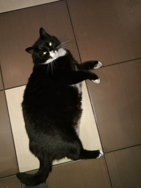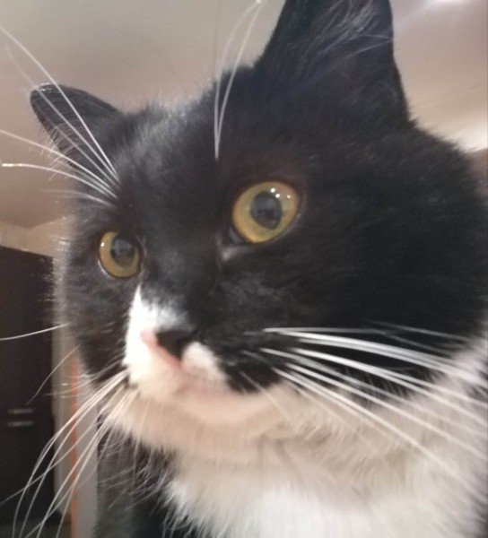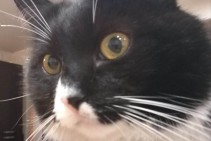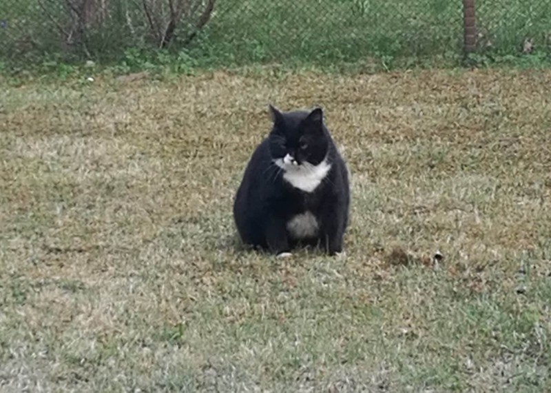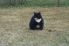 Melna ar baltu krādziņu, purniņu un ķepām. Aizklīdusi no privātmājas pagalma.