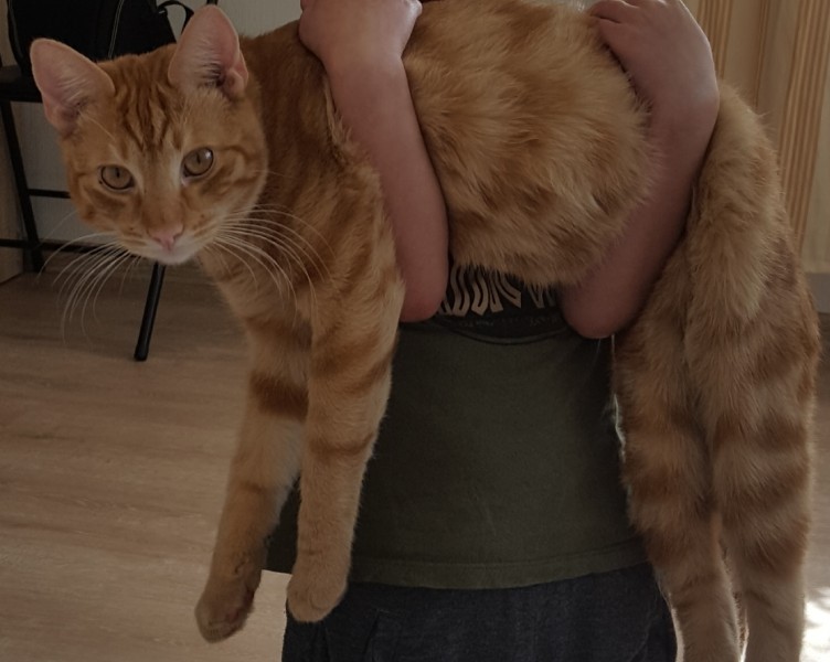 Rūdā krāsā ar izteiksmīgām strīpām uz galvas un uz visā ķermeņa. Nav neviena baltā plankuma.