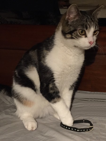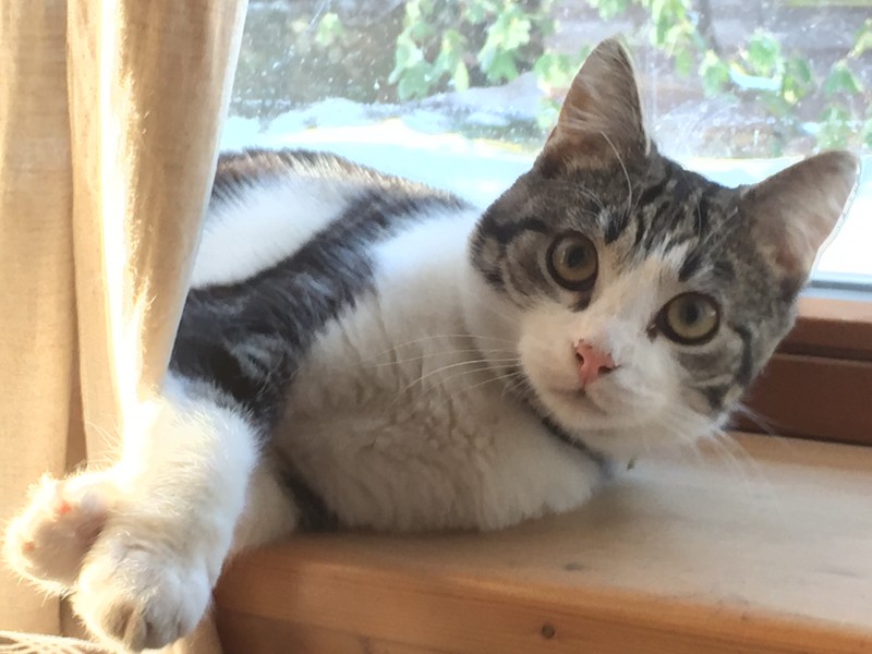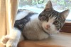 1 gadu vecs, strīpains ar baltu vēderu un ķepām. Melna kaklasiksna ar telefona Nr. Ļoti draudzīgs un komunikabls.